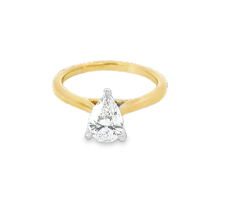 18Ct Yg/Wg 1.00Ct Pear Diamond Solitaire Lab Grown
