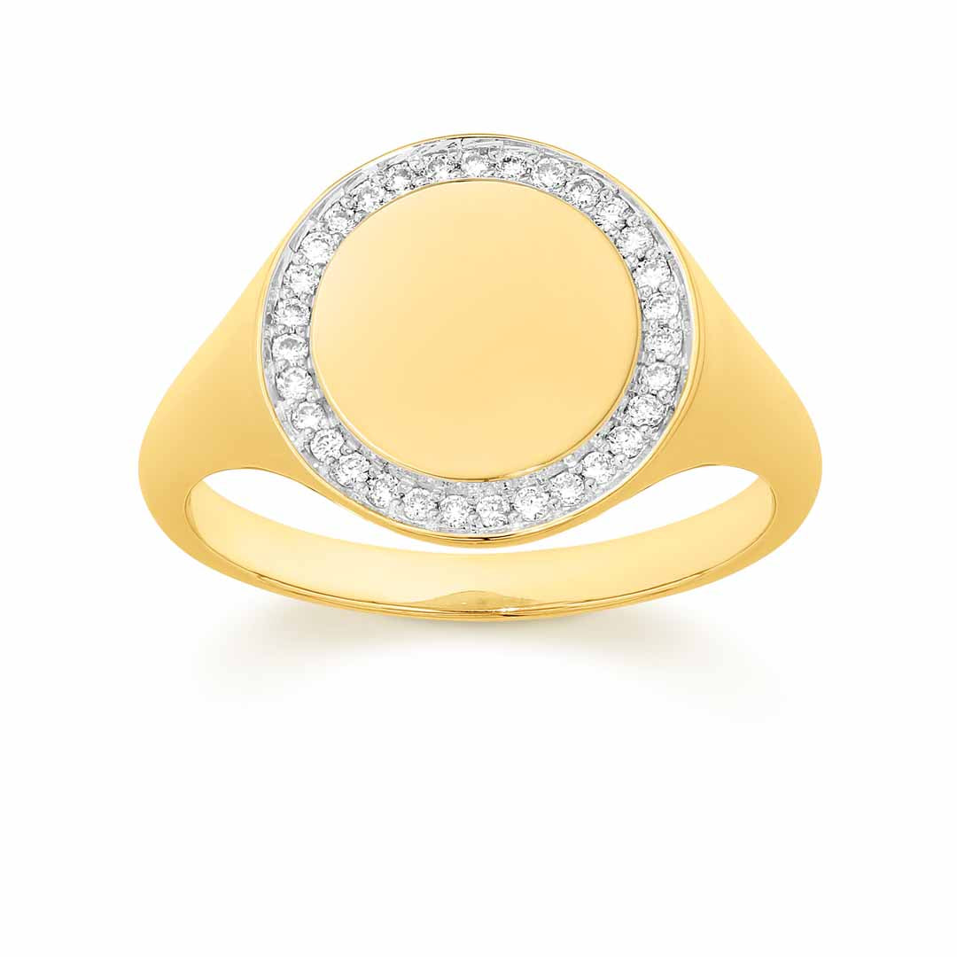 9ct Y/G Diamond Round Top with Halo Signet Ring TDW=0.15ct JKL/SI3