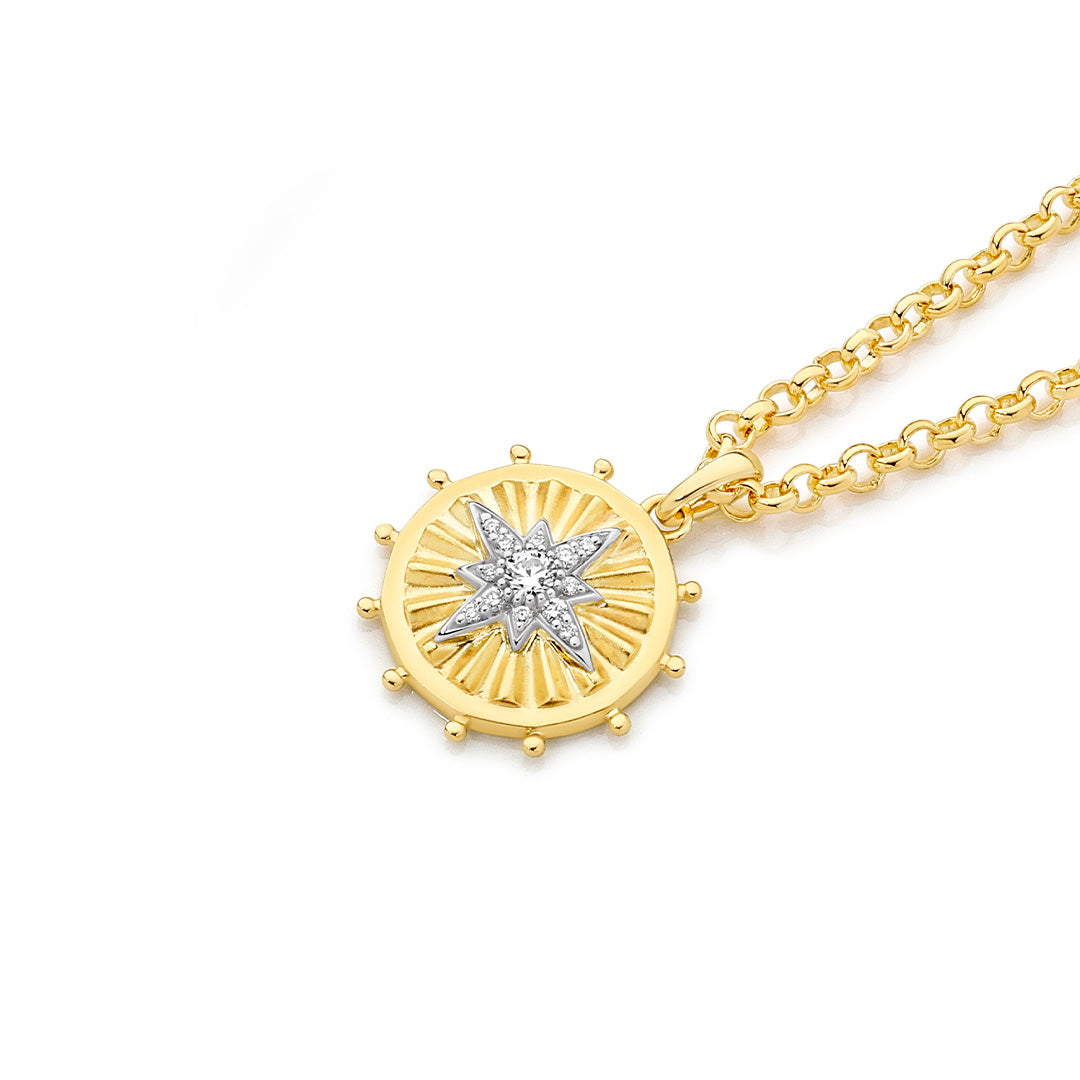 9ct YG/WG Diamond Set Round Ribbed Disc Pendant TDW=0.15ct JKL/SI3