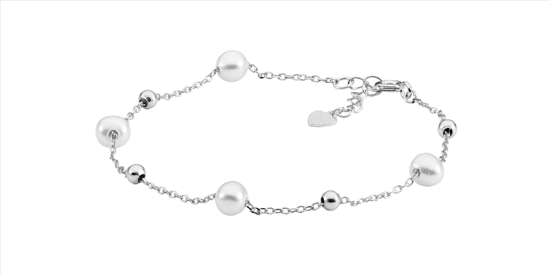 Ellani Sterling Silver Freshwater Pearl & Ball Bracelet