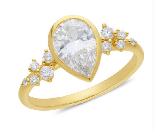 9K Yellow Gold Lab-Grown Diamond Pear Centre Ring with Round Brilliant Cut Band β 1.775ct E/F VS