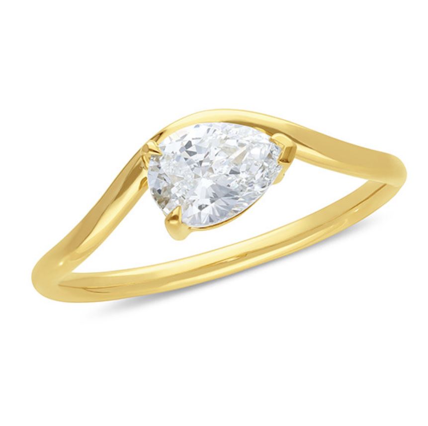 9ct Yellow Gold Pear Diamond Ring β 0.70ct β Floating Curved Band, Claw Set