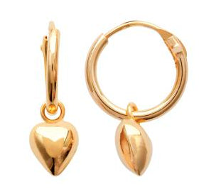 18Ct Yellow Gold Plated Puff Heart Hoop Drop Earrings
