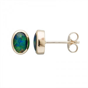 9ct Yellow Gold Oval Triplet Opal Earrings