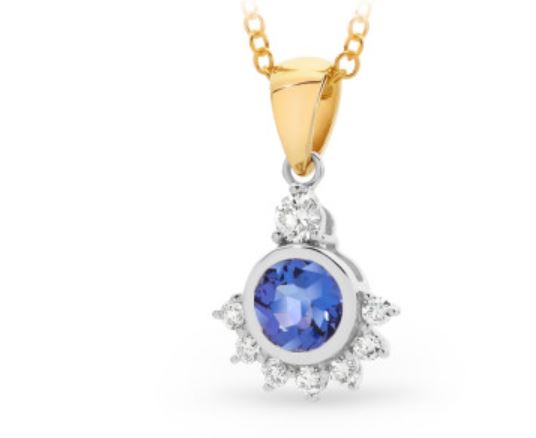This pendant features a 9ct white gold setting with a central aquamarine gemstone, complemented by diamond accents. The design is elegant and closely aligns with your specifications.