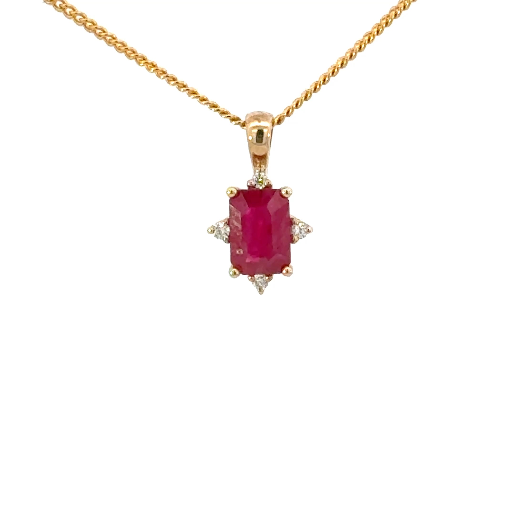 9ct Yellow Gold Ruby & Diamond Pendant