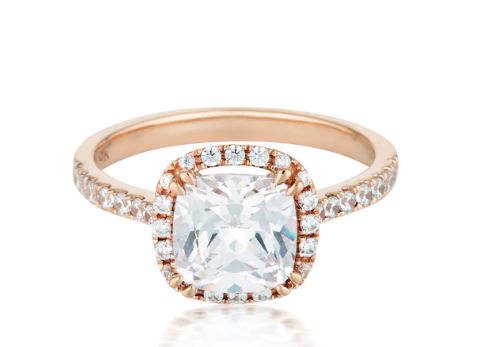 'Georgini Gold' Rose Gold Cushion Cut Halo Moissanite Ring
