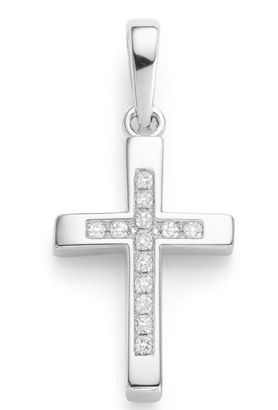 18ct White Gold 0.17ct Diamond Channel-Set Latin Cross Pendant