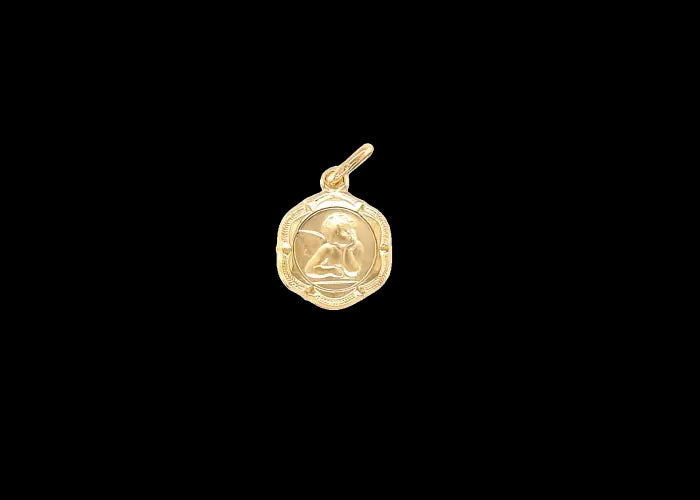 9ct Italian Yellow Gold Angel Religious Pendant – 14mm Fancy Edge