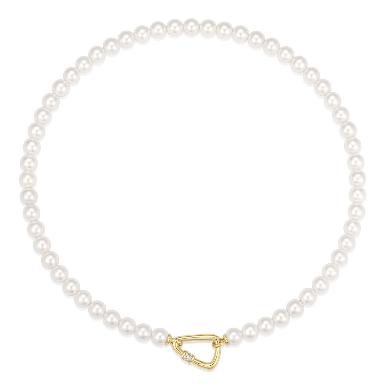 Ellani Sterling Silver Freshwater Pearl Necklace with Gold Plating