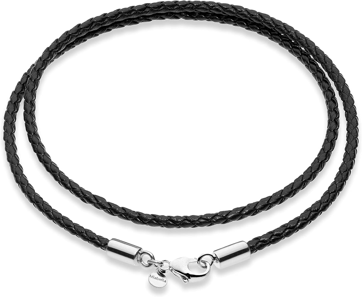 Black Leather 3Mm Plaited Neck With Sterling Silver Clasp 50Cm