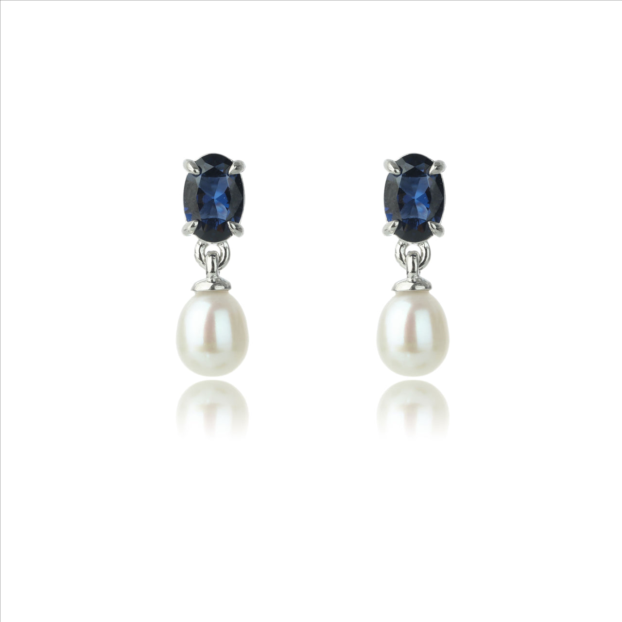 Georgini Oceans Whitsundays Freshwater Pearl Earrings Sapphire Blue