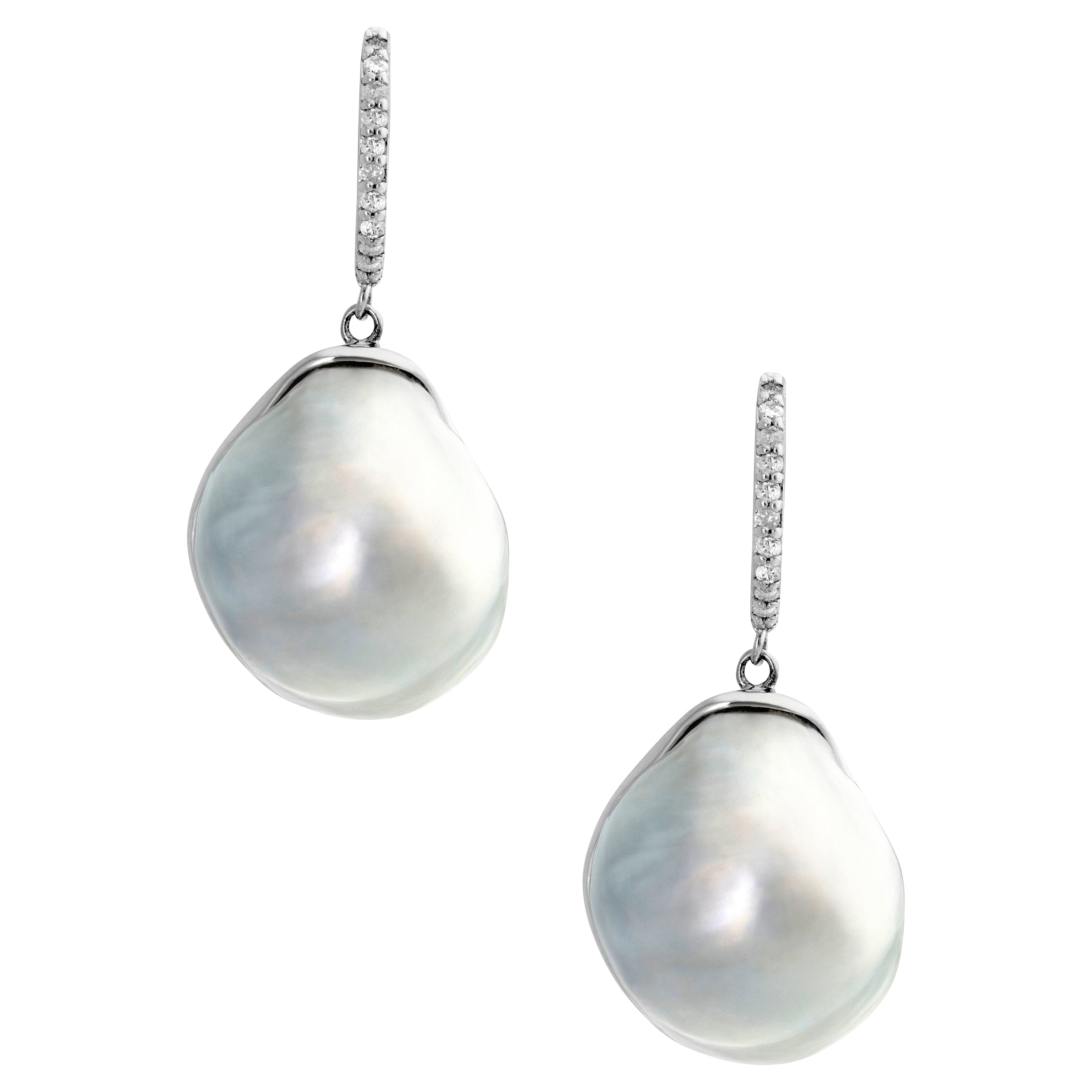 Autore South Sea Pearl Clip-On Earrings in Sterling Silver with Diamonds
