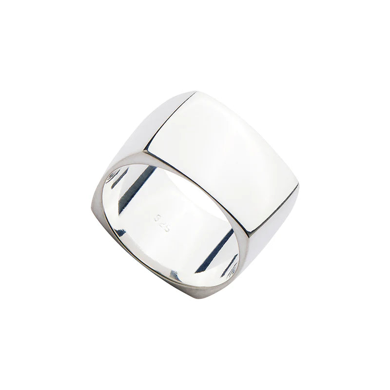 11.5mm wide band with straight sides and a slightly off-centre square silhouette