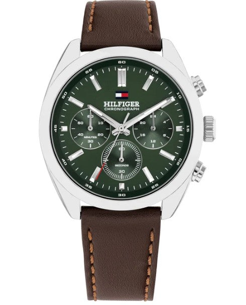 Tommy Hilfiger Brown Leather Forest Green Dial Chronograph Men's Watch