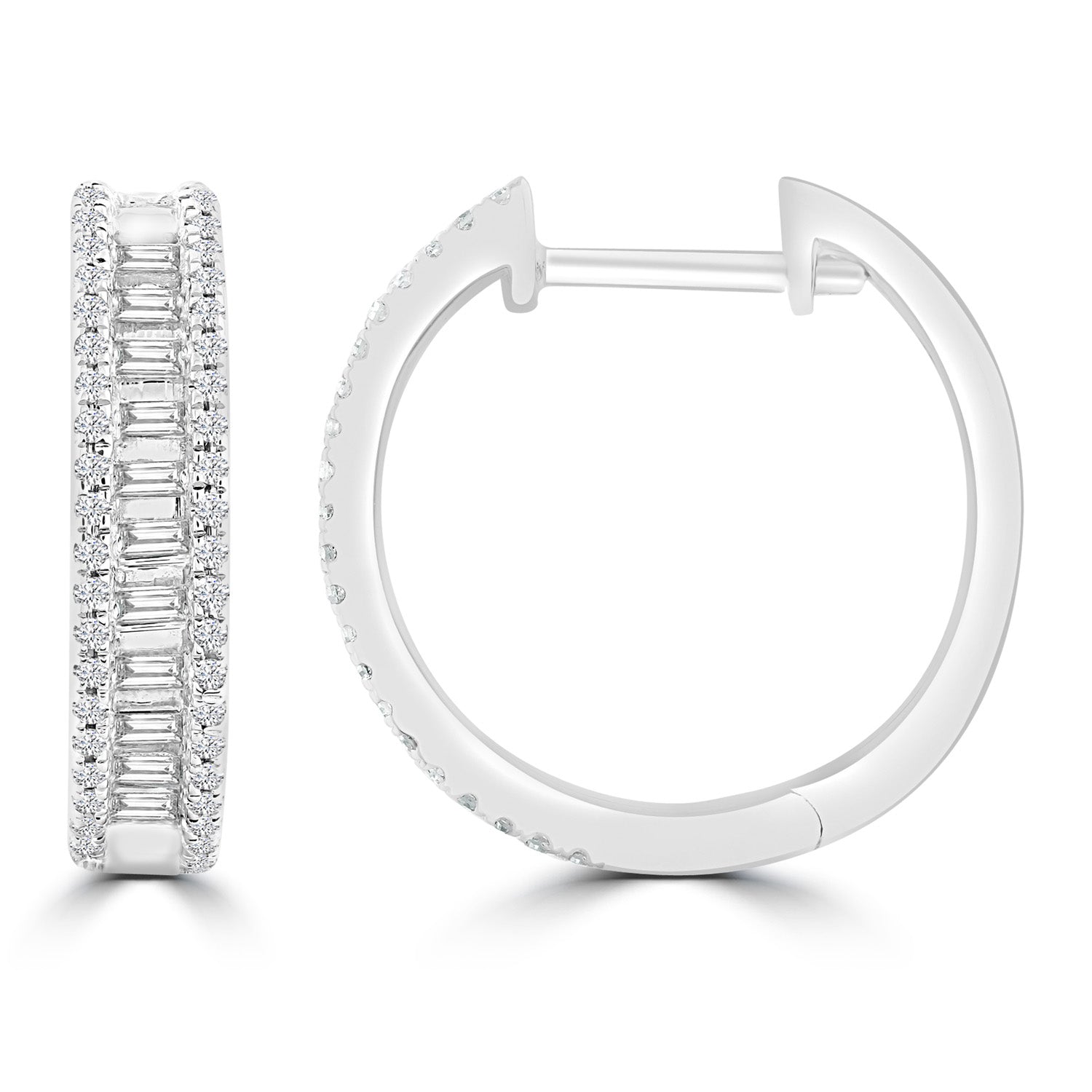 9k White Gold Diamond Round Huggie Earrings