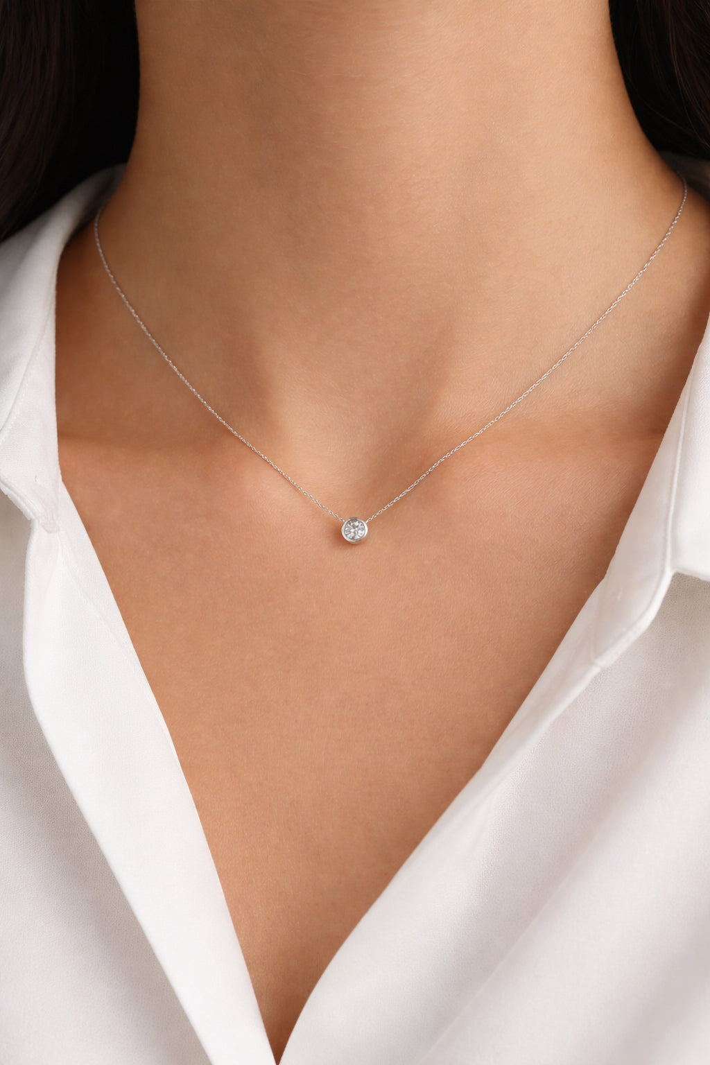 9ct White Gold Diamond Bezel Necklet โ 0.14ct Diamond