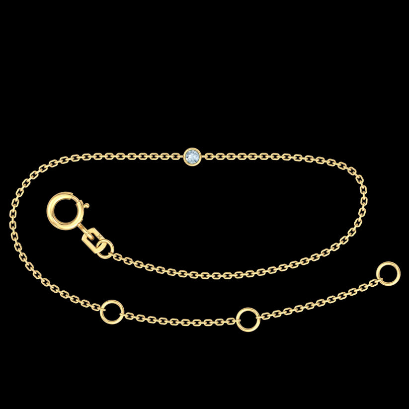 A timeless piece designed with sentiment and subtle sparkle. This delicate 9ct gold bracelet features a 2.3mm bezel-set gemstone, representing one of the twelve birth months—making it a perfect gift or a meaningful everyday adornment. All Bracelets are available in both Yellow and Whitw 9ct Gold