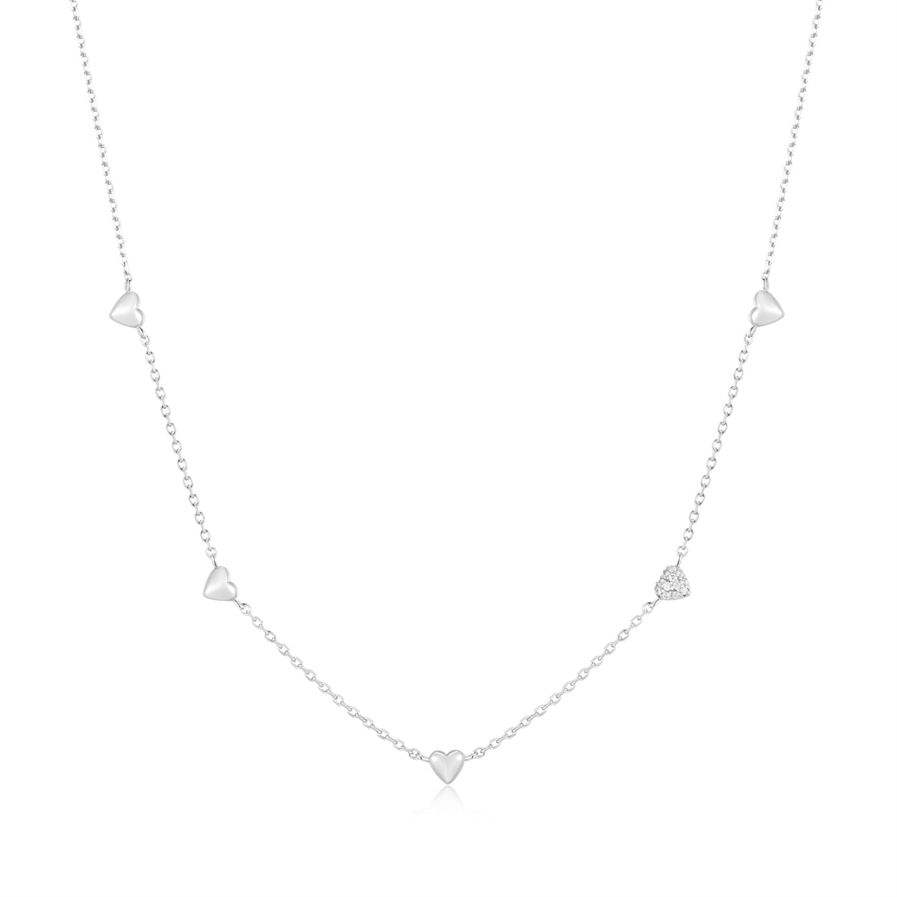 Ania Haie Silver Pave Puffed Heart Station Necklace