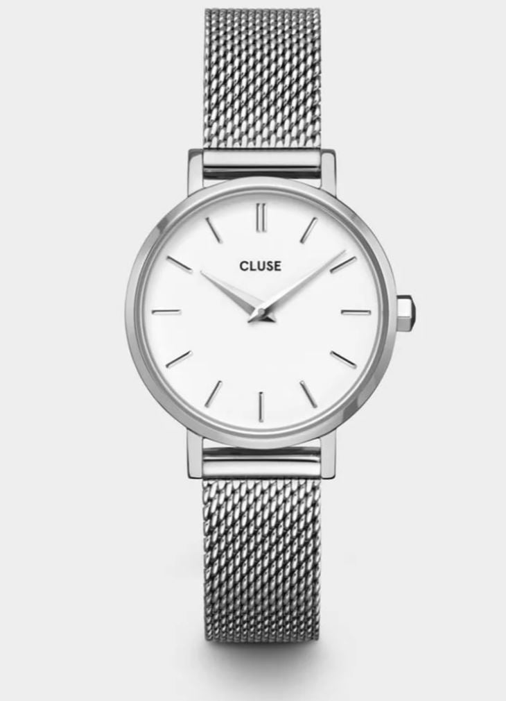 Designed in Amsterdam, CLUSE watches are for women who find beauty in simplicity. Small size, big dreams. With its refined 28 mm case, our Boho Chic Petite collection is your perfect companion if you prefer a smaller, understated timepiece. Featuring a matte white dial and silver coloured case & strap, you'll always be on-trend with this classic colour combination. A watch built to last thanks to its stainless steel case and mesh strap.